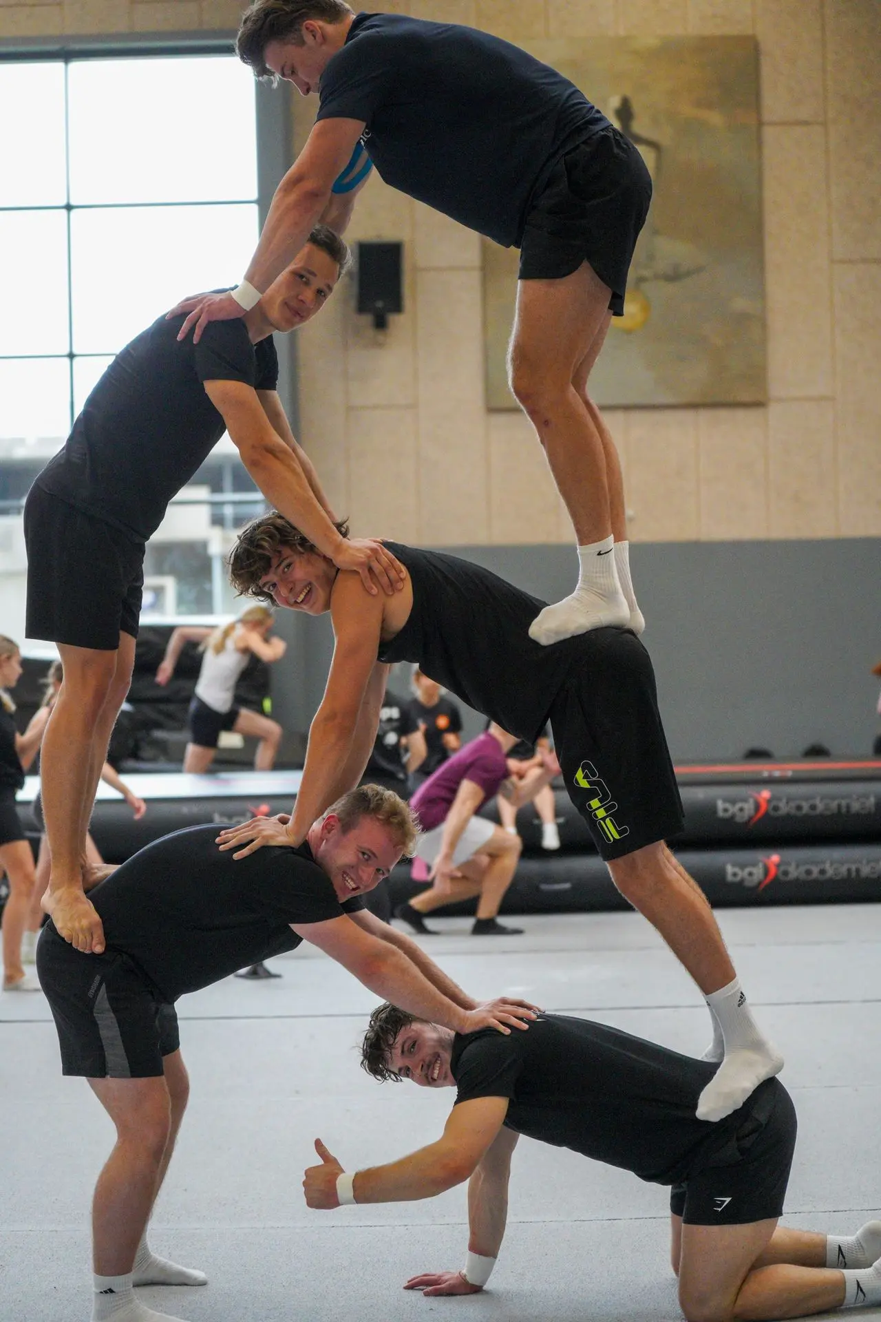 Ob Einsteiger oder Fortgeschrittener: Bei uns lernst du alles – von den Grundlagen im Turnen bis hin zu spektakulären Akrobatikpyramiden und anspruchsvollen Showelementen.